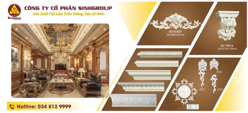 Công Ty Cổ Phần Sinh Group là doanh nghiệp đi đầu về sản xuất, tư vấn và thi công các loại phào chỉ và các vật liệu trang trí nội thất như: Chỉ tường, phào cổ trần, phào chân tường, hoa văn phù điêu, phào khung tranh, khung ảnh, khung gương… từ vật liệu nhựa PU cao cấp